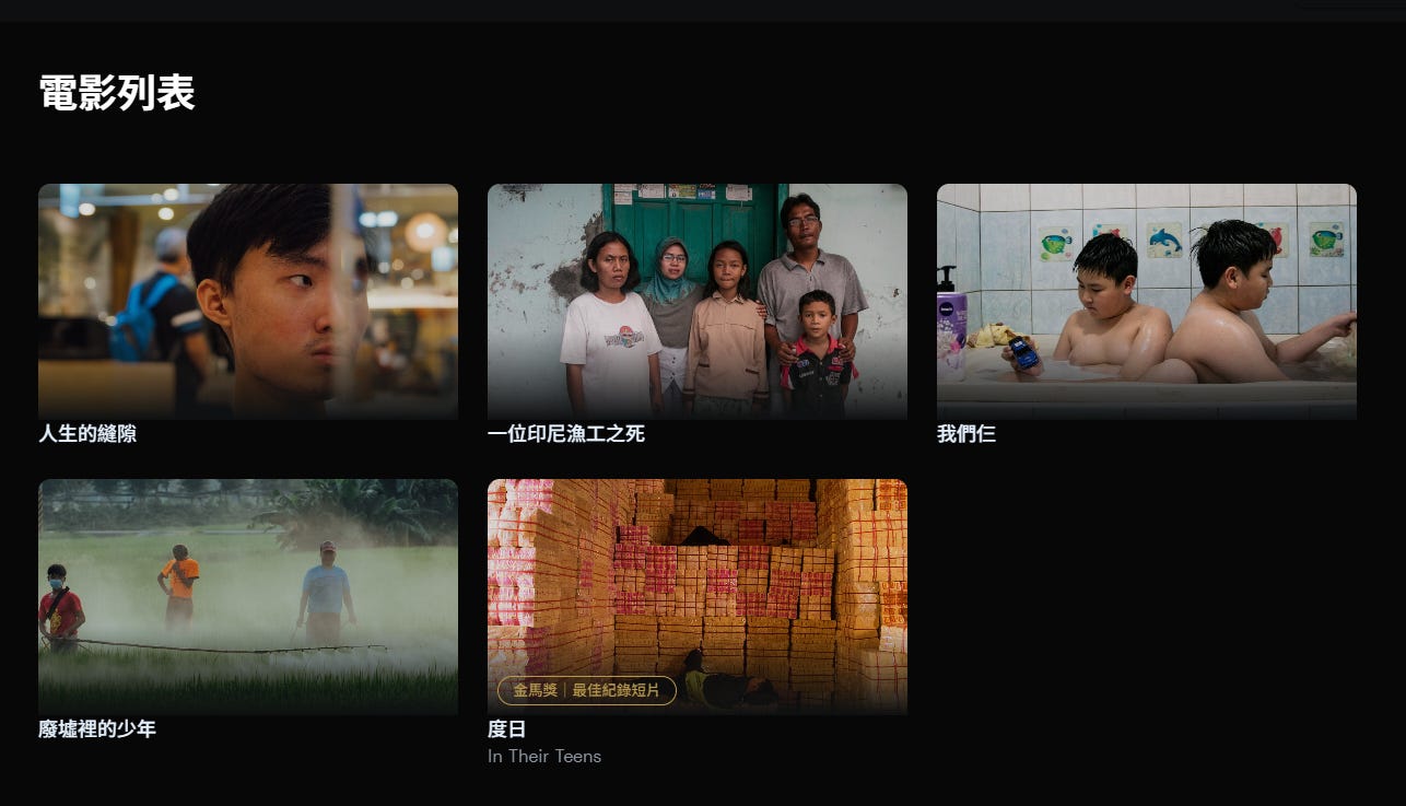 在這個只有五部的片單中,除了金馬獎最佳短片得主《度日》以外,其餘每一部短片都可以在Giloo上免費觀看,報導者也有相應的文字報導專題~
