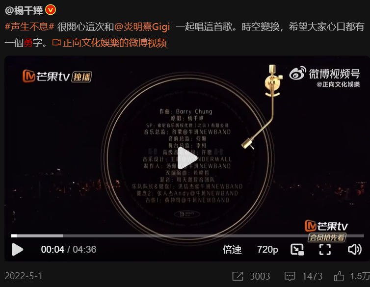 2017年,黃偉文又為楊千嬅寫了《餘春嬌》一曲的詞。自此之後又停止了合作。