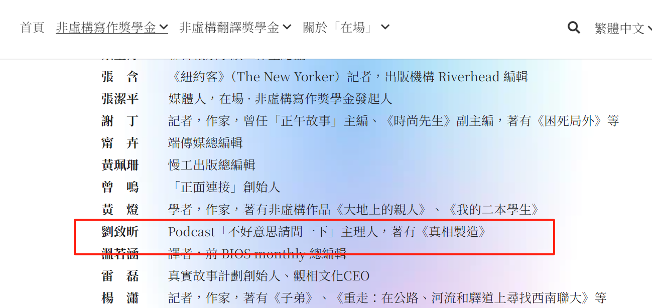 後來我才知道到他曾經在《報導者》擔任副總編輯,報導者的Podcast 節目《The Real Story》最早由他主持。在播客之外,你可以通過他在報導者寫過的報導以及一些專訪了解他所做過的事情。